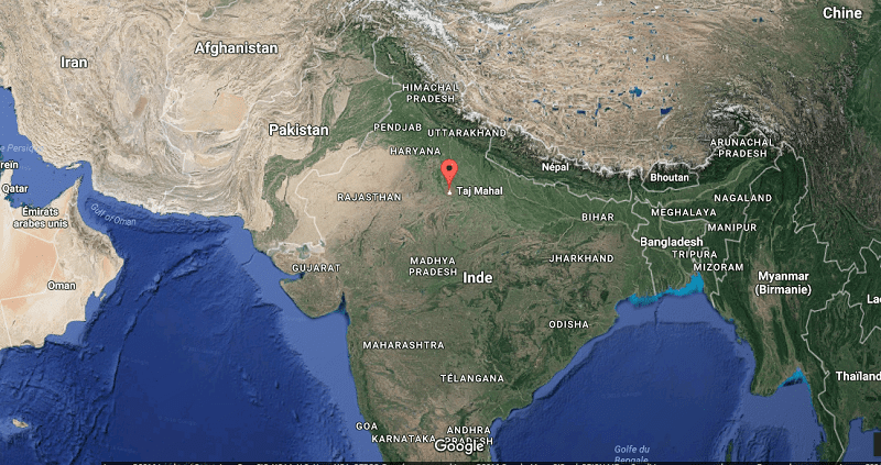 Le Taj Mahal, qui signifie « la couronne du palais », est situé à Agra, au bord de la rivière Yamuna, dans l’État de l’Uttar Pradesh, en Inde.